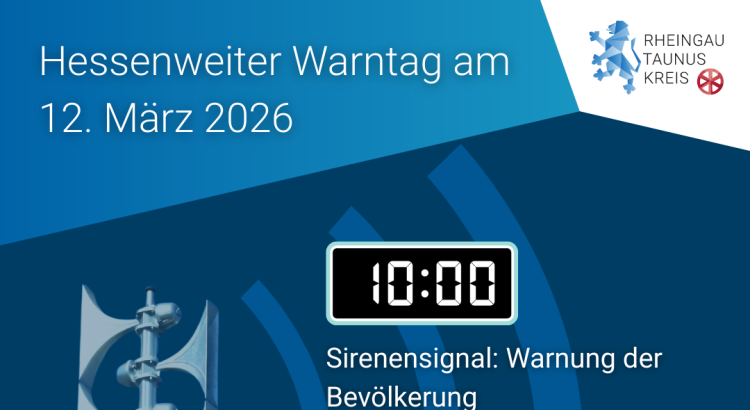 Um 10:00 Uhr heulen die Sirenen im gesamten Rheingau-Taunus-Kreis. Zeitgleich werden Warnmeldungen über das Modulare Warnsystem (MoWaS) an Radio- und Fernsehsender sowie über Cell Broadcast direkt auf Smartphones gesendet – dafür ist keine App erforderlich.