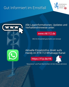Eine Warnung ist nicht nur ein Signal – sie geht mit fortlaufenden offiziellen Informationen und konkreten Verhaltenshinweisen einher. Im Rheingau-Taunus-Kreis werden diese über die Notfallseite www.rtk112.de sowie über den WhatsApp-Kanal der Gefahrenabwehr bereitgestellt. Jetzt abonnieren unter: https://t1p.de/rtk.
